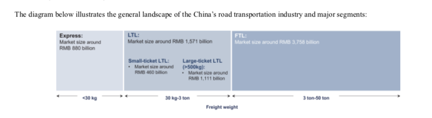 目前中国的公路运输网络总长度达15万公里,公路运输是中国交通运输的重要组成,2020年大约占整体交通运输总支出的80%。整车运输:全卡车装载货运重量超过3吨,从出发地直达目的地。快递:即时运输服务,货运重量在30公斤以内的货物。