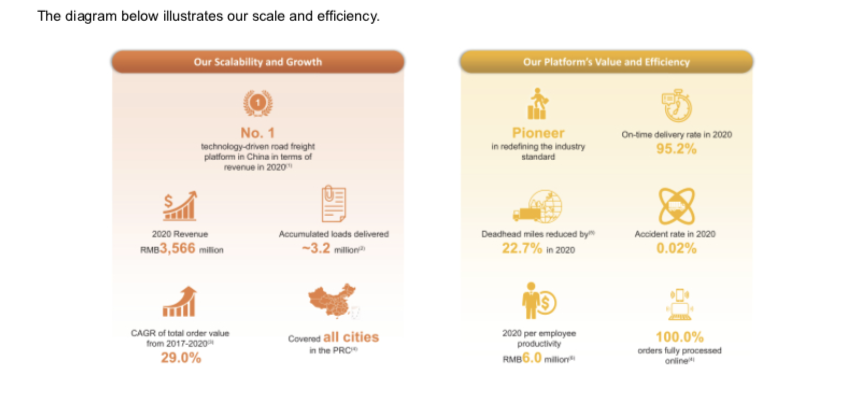通过数字化、透明化、智能化、标准化交易流程提供货运匹配服务的数字货运企业在国内不少。满帮前身是2013年和2011年成立的运满满、货车帮,两家公司迅速成长为中国领先的网络货运平台,后来于2017年合并成立满帮,目前已经是一家具有显著规模经济的全国性物流平台企业。根据其招股书,满帮希望通过整个价值链开创数字化、标准化和智能的物流基础设施,改变了中国的道路运输行业。全球最大的网络货运平台