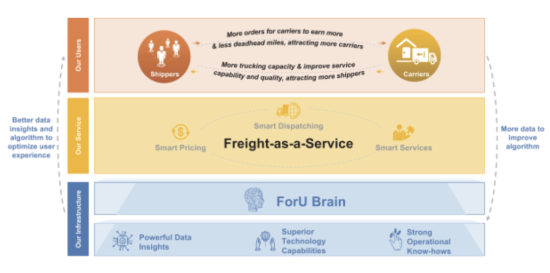 福佑一直的定位是技术驱动的整车货运平台,以数字化链接货主和司机,改变公路货运并重新定义行业标准。与一般的整车运输货运平台不同,福佑有承运方特质,讲究用技术手段达到理想的配送及时率、及时承运率。而这种以技术为驱动控制公路货运每一环的平台模式形成了福佑与其他整车货运企业的差异化竞争。
