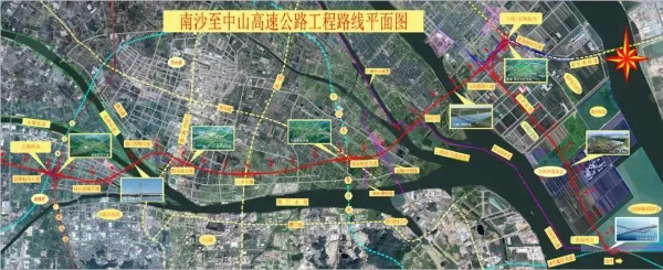南中高速项目主线起于南沙港快速路新垦互通,终至中山新隆枢纽互通与江中高速顺接并与广澳高速交叉。