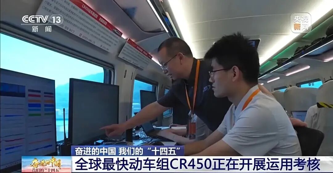 总台央视记者 郑连凯:我身后就是正在开展运用考核的CR450动车组。什么是“运用考核”呢,通俗地说,就是“刷里程”。因为从去年底样车下线以来,它就一直在进行各种的达标考试,经过一轮又一轮的周考、月考、期中考,已经交出了时速450公里的答卷,各项指标都已经合格,但是考试还得继续,因为按照技术要求,CR450要在指标合格的前提下,跑够60万公里,才能够载客运营。从我们现在所在的宜昌北站开始,到荆门、汉川等站的这条近300公里的高铁线。