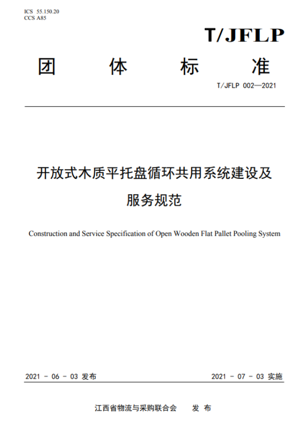 江西省物流与采购联合会于2021年6月3日正式发布全省物流行业团体标准《开放式木质平托盘循环共用系统建设与服务规范》(T/JFLP 002-2021)。