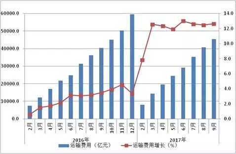 一是由于经济结构的持续调整,前三季度我国服务业占GDP比重已上升至52.9%,比上年同期0.1个百分点。历史数据表明,服务业占GDP的比重每上升1个百分点,物流费用与GDP的比率下降约0.3-0.4个百分点。