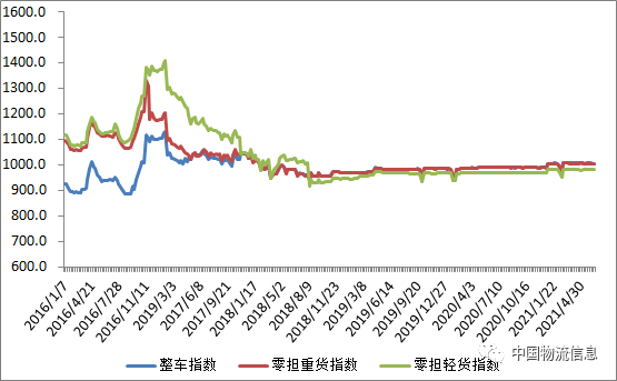 本周(2021年7月12日-7月16日),由中国物流与采购联合会和林安物流集团联合调查的中国公路物流运价指数为999.98点,比上周回落0.06%。
