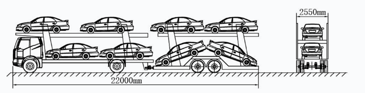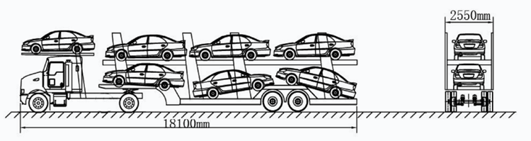 合规车辆运输车装载示意图及 合规车辆运输车装载超出限值的处罚要求 一、合规车辆运输车装载示意图 平头铰接列车 长头铰接列车 中置轴车辆运输车 二、合规车辆运输车装载超出限值的处罚要求 对于合规车辆运输车,凡装载符合要求的,即:平头铰接列车装载6辆及以下,长头铰接列车装载7辆及以下,中置轴车辆运输车装载8辆及以下,且装载长度、宽度未超过车辆运输车外廓尺寸限值的,车辆高度按照《交通运输部办公厅 公安部办公厅 工业和信息化部办公厅关于深入推进车辆运输车治理工作的通知》(交办运函〔2018〕702号)有关要求进行执法检查。装载数量超过上述数值的,区分以下情况处理: 1.平头铰接列车装载7辆以上的,严格执行装载长度不得超过17.1米、宽度不得超过2.55米、高度不得超过4米的要求。不符合要求的,公安交通管理部门依据《道路交通安全法》第九十条、《道路交通安全法实施条例》第五十四条规定,处警告或者二十元以上二百元以下罚款、记分,并根据《行政处罚法》第二十八条责令当事人改正违法行为。对具有上装货台的平头铰接列车,若装载乘用车车型较小,上层单排平放4辆车(不得上下左右倾斜)前后均不超过车辆运输车外廓尺寸,且上装货台所载乘用车质量未超过货台额定载质量的,可允许装载7辆车。 2.长头铰接列车装载8辆及以上的,严格执行装载长度不得超过18.1米、宽度不得超过2.55米、高度不得超过4米的要求。不符合要求的,公安交通管理部门依据《道路交通安全法》第九十条、《道路交通安全法实施条例》第五十四条规定,处警告或者二十元以上二百元以下罚款、记分,并根据《行政处罚法》第二十八条责令当事人改正违法行为。 3.中置轴车辆运输车装载9辆以上的,严格执行装载长度不得超过22米、宽度不得超过2.55米、高度不得超过4米的要求。不符合要求的,公安交通管理部门依据《道路交通安全法》第九十条、《道路交通安全法实施条例》第五十四条规定,处警告或者二十元以上二百元以下罚款、记分,并根据《行政处罚法》第二十八条责令当事人改正违法行为。若装载乘用车车型较小,上层单排平放5辆车(不得上下左右倾斜)前后均不超过车辆运输车外廓尺寸的,可允许装载9辆车。