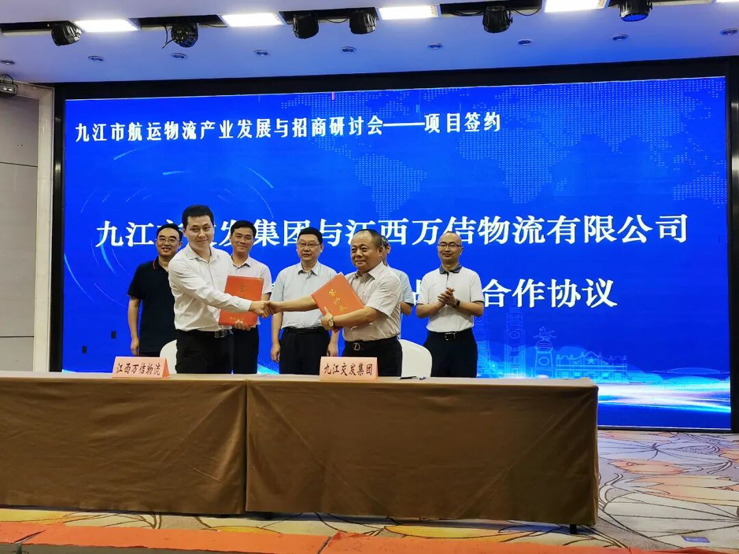 会上,江西省省级物流公共信息服务平台建设和运营单位江西万佶物流有限公司,与九江航运物流数据中心建设运营单位九江市交通航运发展集团有限公司举行了签约合作。至此,江西省省级物流公共信息服务平台自2020年12月24日签约高铁货运以来,正式开启江西省“公、铁、水”一站式联运新模式。