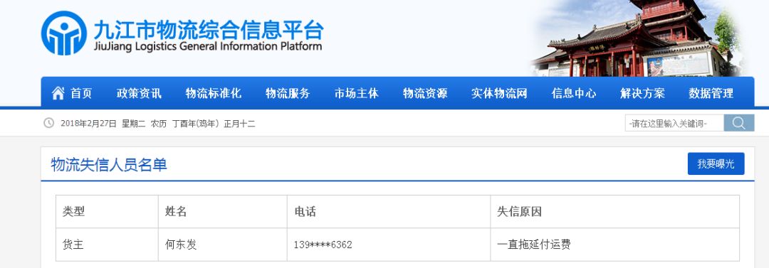 江西省省级物流公共信息平台予以公示
