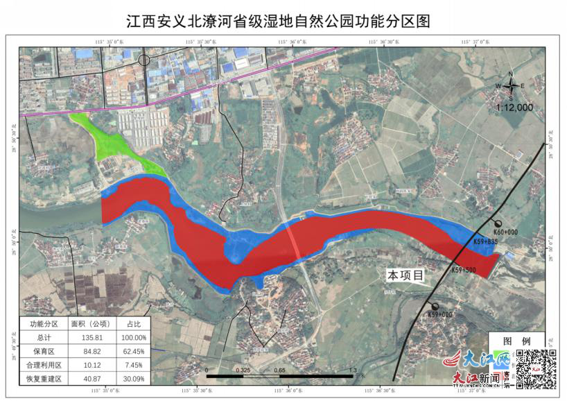 项目K59+500~K59+835约335m以桥梁形式穿越江西安义北潦河省级湿地公园保育区和恢复重建区;