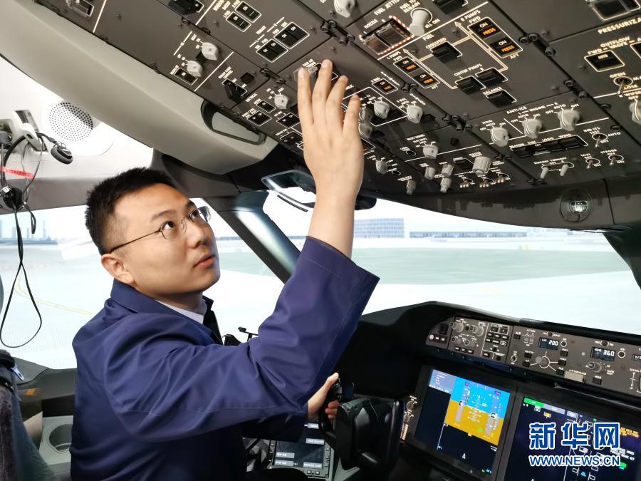 在蓉飞行模拟机运行团队负责人姜毓琦在工作中(10月16日摄)。新华社发(中国商飞四川分公司供图)