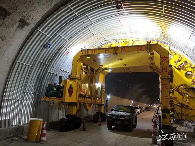 江西新闻客户端讯(江西日报记者卞晔)日前,由华东交通大学与江西交投集团、江西基业良工桩机制造有限公司共同研制的不中断交通隧道维养台车,首次在武吉高速九岭山隧道养护作业中落地应用,仅用时22天就完成该段隧道的一体维护保养。据悉,该装备为国内首台不中断交通的隧道维养台车。