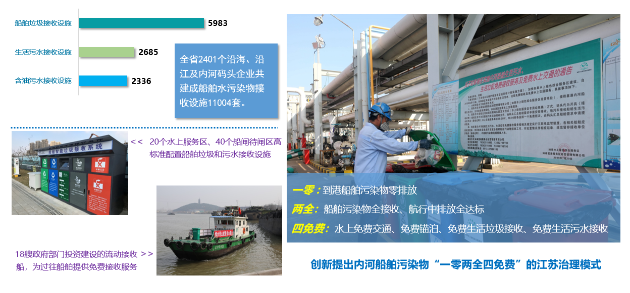 通过一年集中整治,江苏省辖区船舶和港口污染突出问题得到有效治理。400总吨以上货船全部完成生活污水防污设施改造,400总吨以下货船防污改造1.73万余艘,占全国总数近60%;全省港口码头基本做到船舶垃圾、生活污水、含油污水接收设施的全覆盖,实现“应收尽收”;全面关停长江江苏段水上临时过驳区,建成5座长江干线洗舱站;新建码头粉尘综合防治率达100%,完成664家港口企业粉尘在线监测系统建设;全省原油、成品油装船泊位57个,全部完成油气回收设施建设;1133个内河码头环保整治工作全面完成。