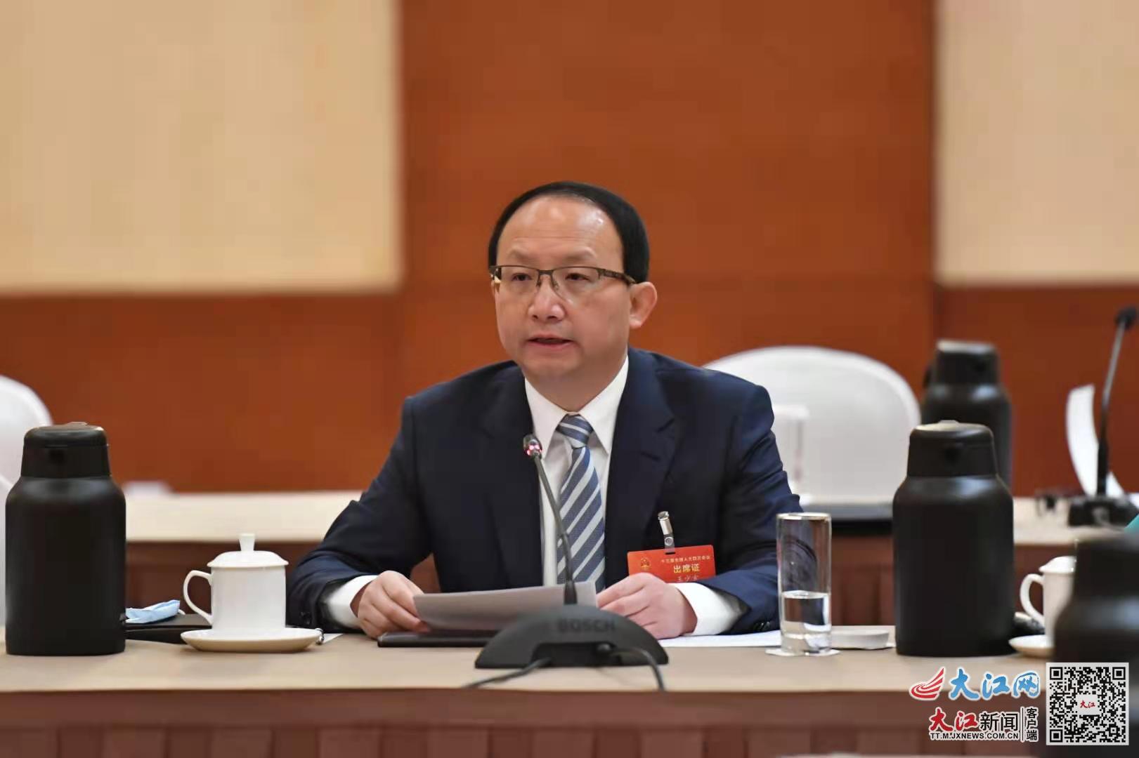 江西代表团在住地举行全体会议 ,全国人大代表、吉安市市长王少玄在发言