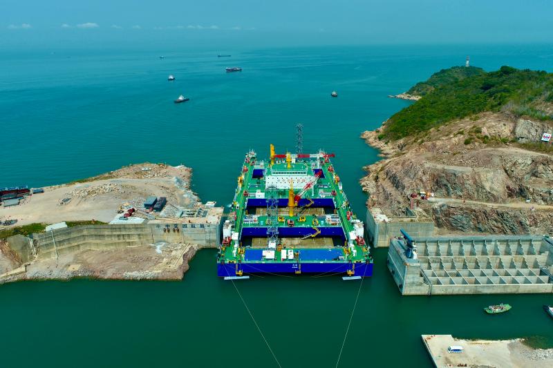 3月20日中午12点30分,世界首制沉管运安一体船“一航津安1”从珠海桂山岛启航,在近50公里的航道浮运E8管节一路向北,于21日凌晨0点30分首次横穿矾石水道。该水道是伶仃洋上最繁忙的航道之一,夜间穿越发生碰撞风险大,在广东海事局助力下,期间进行了30分钟的封航管制,在抵达沉放水域后,开展夜间系泊作业。