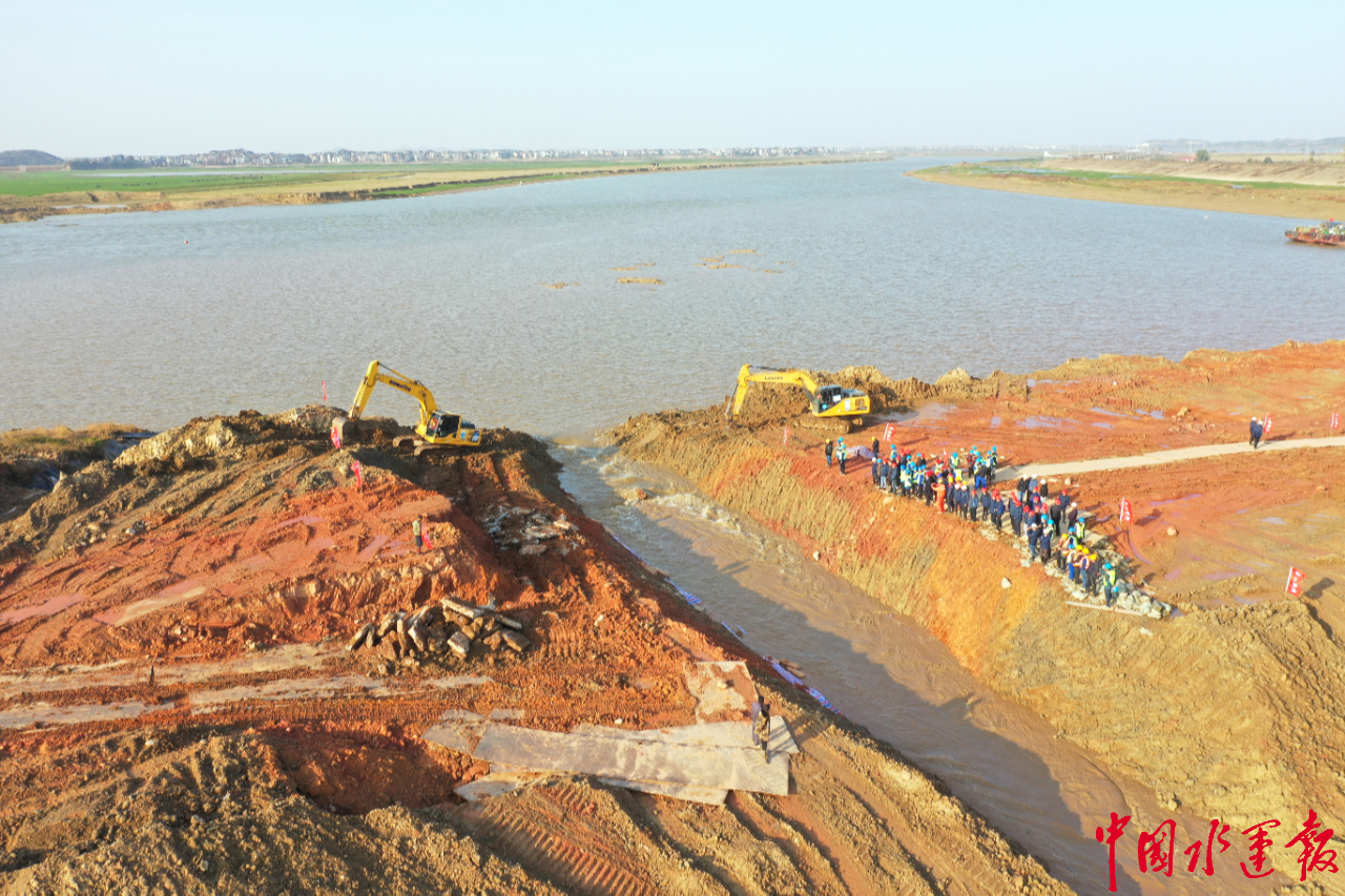 11月22日,双港航运枢纽船闸主体工程成功注水,标志着双港航运枢纽水下部分已基本完成。目前,枢纽上下游航道段已按照计划安排开挖,完成后,将对导流明渠实施断航封堵。