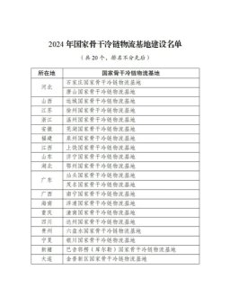 近日,国家发展改革委印发《关于做好2024年国家骨干冷链物流基地建设工作的通知》,发布新一批20个国家骨干冷链物流基地建设名单。2020年以来,国家发展改革委已分4批将86个国家骨...