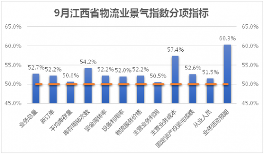 9月份,江西省物流业景气指数(LPI)为52.7%,比上个月回升0.7个百分点,各主要分项指数均保持回升态势且均在50%以上景气区间,显示出在经过7、8月调整,生产建设步入常态运行轨道...