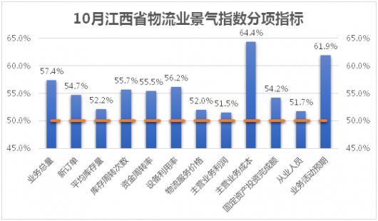 10月份,江西省物流业景气指数(LPI)为57.4%,比上个月回升4.7个百分点,各主要分项指数除物流服务价格指数出现小幅回落外,其余指数均保持回升态势,反映出在“金九银十”的传统...