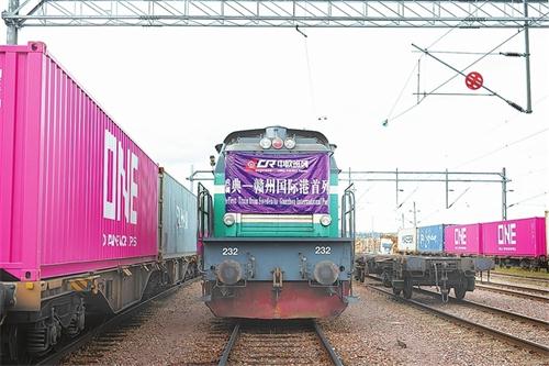 9月17日,瑞典至赣州港首列中欧班列开通。 9月17日,瑞典至赣州港首列中欧班列开通仪式在瑞典达拉纳省因申举行,一列载满云杉木材的中欧班列从瑞典达拉纳省北魁沿湖木业公司车站...