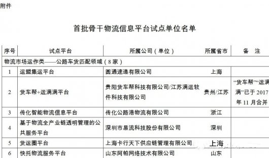 据国家发展改革委官方网站消息,根据《“互联网+”高效物流实施意见》有关工作部署,发改委、交通部、网信办联合委托第三方机构组织开展了首批骨干物流信息平台试点评选工作。...