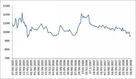 本周(2018年3月26~3月30),由中国物流与采购联合会和林安物流集团联合调查的中国公路物流运价指数957.72点,环比回升0.87%。 图 1 2015-2018年各周中国公路物流运价指数 各车型指数均有不...