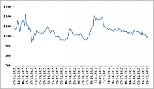 本周(2018年2月26日~3月2日),由中国物流与采购联合会和林安物流集团联合调查的中国公路物流运价指数985.12点,环比回落1.87%。 图 1 2015-2018年各周中国公路物流运价指数 各车型指有不...