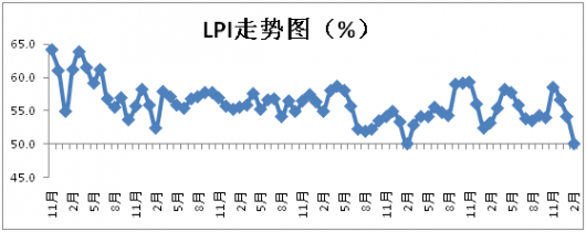 中国物流与采购联合会发布的2018年2月份中国物流业景气指数为50%,较上月回落4.2个百分点;中国仓储指数为48.4%,较上月回落3.5个百分点;中国公路物流运价指数为99.6点,比上月回落...