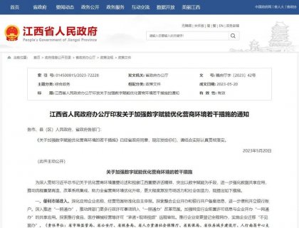 为突出以数字赋能为手段,进一步强化数据共享应用,推动流程重塑再造、改革系统集成,助力全省营商环境优化升级,更大程度激发市场活力和社会创造力,近日,江西省人民政府办...
