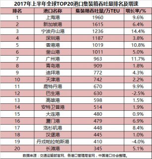 Alphaliner数据显示,2017年上半年全球集装箱港口增速6.7%,预计全年增速为6%。 根据Alphaliner统计的250个以上集装箱港口吞吐量,今年第二季度全球集装箱港口增速为7.4%,与第一季度5.9%增...