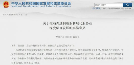 发改产业〔2019〕1762号 各省、自治区、直辖市及计划单列市、新疆生产建设兵团有关部门: 先进制造业和现代服务业融合是顺应新一轮科技革命和产业变革,增强制造业核心竞争力、培...