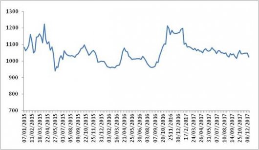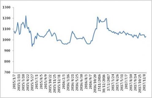中国物流与采购联合会 本周(2017年12月4日~12月8日),由中国物流与采购联合会和林安物流集团联合调查的中国公路物流运价指数1047.02点,环比回升0.06%。 图 1 2015-2017年各周中国公路物...