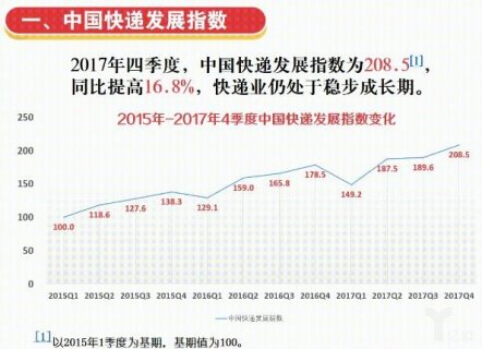 跨境寄递成为新亮点,10-11月国际及港澳台业务量累计完成1.7亿件,同比增长36.1%,比同期行业整体增速高11.5个百分点。 1月12日,国家邮政局召开2018年一季度例行新闻发布会,发布并解...