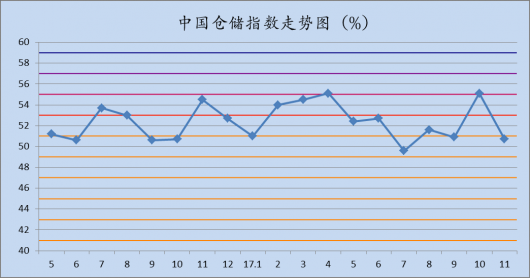中国物流与采购联合会与中储发展股份有限公司联合调查的2017年11月中国仓储指数为50.7%,较上月回落4.4个百分点。各分项指数中,除延伸业务量指数、企业员工指数较上月有所回升外...