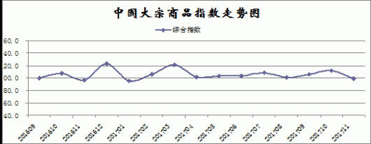 由中国物流与采购联合会调查、发布的2017年11月份中国大宗商品指数为99.4%,创下近十个月以来的最低。各分项指数中,供应指数、销售指数均自高位回落,库存指数升幅继续扩大。数...