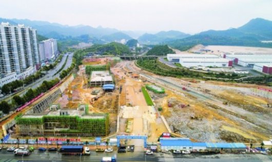 建设中的贵阳改貌铁路口岸建设项目(一期工程)。石照昌 摄 10月11日,走进位于花溪区孟关乡改貌村的贵阳改貌铁路口岸建设项目(一期工程)现场,一座座塔吊林立,一辆辆工程车...