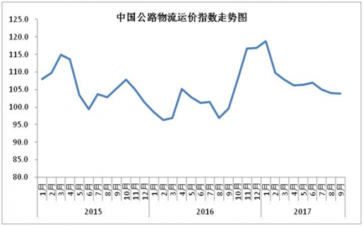 中国物流与采购联合会 由中国物流与采购联合会和林安物流集团联合调查的中国公路物流运价指数2017年9月为103.9点,在连续三个月小幅回调,环比回落0.1%,但回落幅度明显收窄,三季...