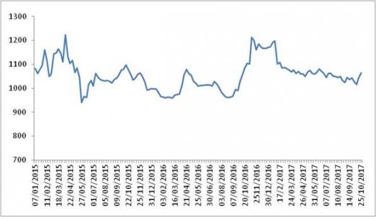 中国物流与采购联合会 本周(2017年10月16日~10月20日),由中国物流与采购联合会和林安物流集团联合调查的中国公路物流运价指数1043.33点,止跌回升,比上周回升2.71%。 图 1 2015-2017年各...