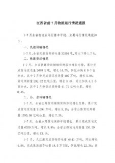 1-7月 , 全省公路运输完成客运量3.27亿人、旅客周转量175亿人公里,同比分别下降1.3%和1.4% 。 完成货运量7.1亿吨、货物周转量1795亿吨公里,同比分别增长9.1%和7.3%。 1-7月 , 水路运输完...