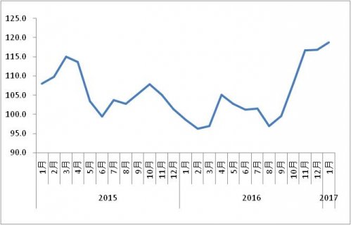 中国物流与采购联合会 中国公路物流运价指数2017年1月为118.8点,比上月回升1.7%,运价指数连续五个月环比回升,月内各周指数环比也均有所回升。 图1 2015年以来各月中国公路物流运价...