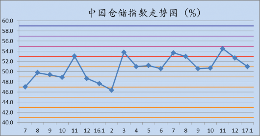 中国物流与采购联合会和中储发展股份有限公司联合调查的中国仓储指数,2017年1月份为51%,较上月回落1.7个百分点,连续第11个月保持在扩张区间。本月指数有所回落,但仍保持在扩张...