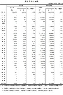 1-12月 ,江西 全省公路运输完成客运量5.3亿人、旅客周转量282亿人公里,同比分别下降0.6%和0.85% 。 完成货运量12.3亿吨、货物周转量3147亿吨公里,同比分别增长6.5%和4.1%。 1-12月 , 水路...