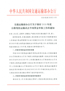交通运输部办公厅关于做好2018年度公路甩挂运输试点专项资金申报工作的通知.pdf...