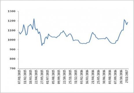 本周(2016年12月5日~12月9日),由中国物流与采购联合会和林安物流集团联合调查的中国公路物流运价指数1170.0点,比上周小幅回落1.3%,但比上年同期增长13.8%。 图 1 2015-2016年各周中国公...
