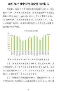 7月12日,国家邮政局举行2023年三季度例行新闻发布会,发布《2023年6月中国快递发展指数报告》,解读上半年行业运行情况。2023年6月,中国快递发展指数为366.3,同比提升26.6%,行业规...