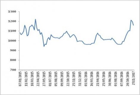 本周(2016年11月21日~11月25日),中国公路物流运价指数1197.3点,连续两周有所回调,比上周回落3.2%,但比上年同期增长8.9%。 图 1 2015-2016年各周中国公路物流运价指数 各车型指数环比均...