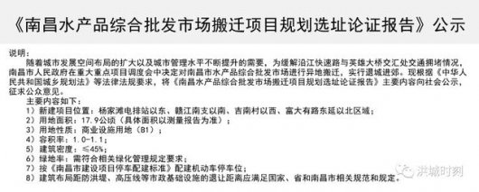 近日,南昌市自然资源局公示了《南昌水产品综合批发市场搬迁项目规划选址论证报告》,该项目位于杨家滩电排站以东、赣江南支以南、吉南村以西、富大有路东延以北区域。 选址出...