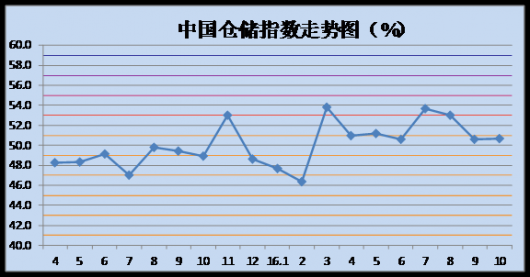 中国物流与采购联合会和中储发展股份有限公司联合调查的中国仓储指数,2016年10月份为50.7%,较上月回升0.1个百分点,连续第8个月保持在扩张区间,整体保持平稳,显示市场活动稳中...
