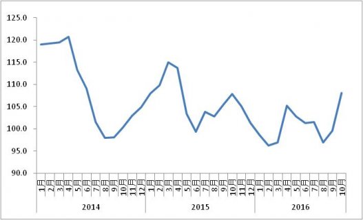 中国公路物流运价指数2016年10月为108.1点,比上月回升8.7%,回升幅度为年内的最高。运价指数连续两个月环比回升,且回升幅度比上年同期扩大5个百分点。这也显示出,本月运价指数的...