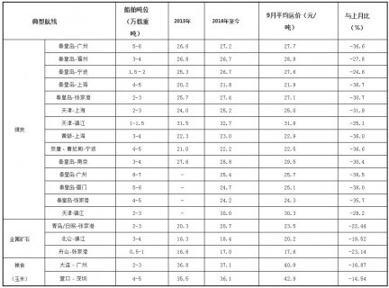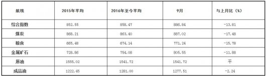 9 月,沿海散货运输市场整体弱势运行,运力供应过剩程度加剧,运价下跌幅度加大。 9 月 30 日,上海航运交易所发布的沿海(散货)综合运价指数报收 854.99 点,较上月同期下跌 15....