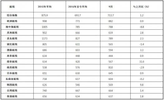9月,中国出口集装箱运输市场处于传统运输旺季,市场总体需求保持旺盛,多条主干航线供需态势稳定,市场运价企稳。 9 月,上海航运交易所发布的中国出口集装箱综合运价指数平均...