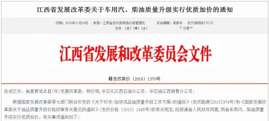各设区市、省直管试点县(市)发展改革委、物价局,中石化江西石油分公司、中石油江西销售分公司: 根据国家发展改革委等七部门联合印发的《关于印发加快成品油质量升级工作方案的...